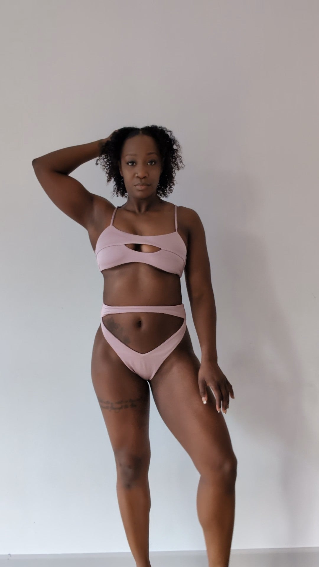 High Waist, High Cut, cheeky bottoms with front and back cutout.